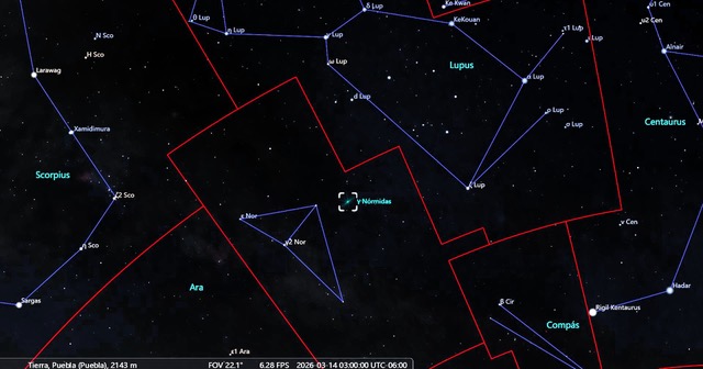 La lluvia de meteoros γ-Normínidas tiene actividad entre el 25 de febrero y el 28 de marzo, con un máximo en las primeras horas del 14 de marzo. La tasa máxima observable será de 6 meteoros por hora, con coordenadas AR=15h50m, DEC=-50º00´. El mejor momento para observar fugaces, será antes del amanecer del 14 o al atardecer del 15 de marzo, aunque la cercanía al horizonte hace difícil la observación, hacia el sur sureste de la esfera celeste. Cabe recordar que para observar una lluvia de meteoros no se requiere ningún instrumento óptico, sólo se requieren cielos oscuros y despejados.