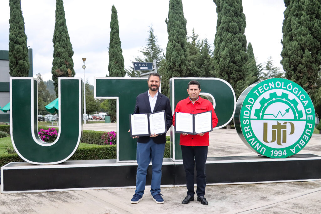 El director de Revista Physios, José Antonio León Castañares, y el rector de la Universidad Tecnológica de Puebla (UTP), maestro Víctor Manuel Rosales Muñoz, firmaron un convenio con el objetivo de hacer redes de divulgación científica con académicos.