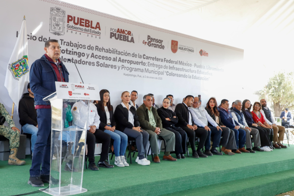 El gobernador dio el banderazo de arranque de obras de rehabilitación del Libramiento de Huejotzingo, de la carretera federal México-Puebla, de la vialidad de acceso al Aeropuerto Hermanos Serdán, del boulevard Río Xochiac y de la carretera San Mateo Capultitlán-Santa Ana Xalmimilulco, y entregó mil 400 calentadores solares para familias de esta demarcación.