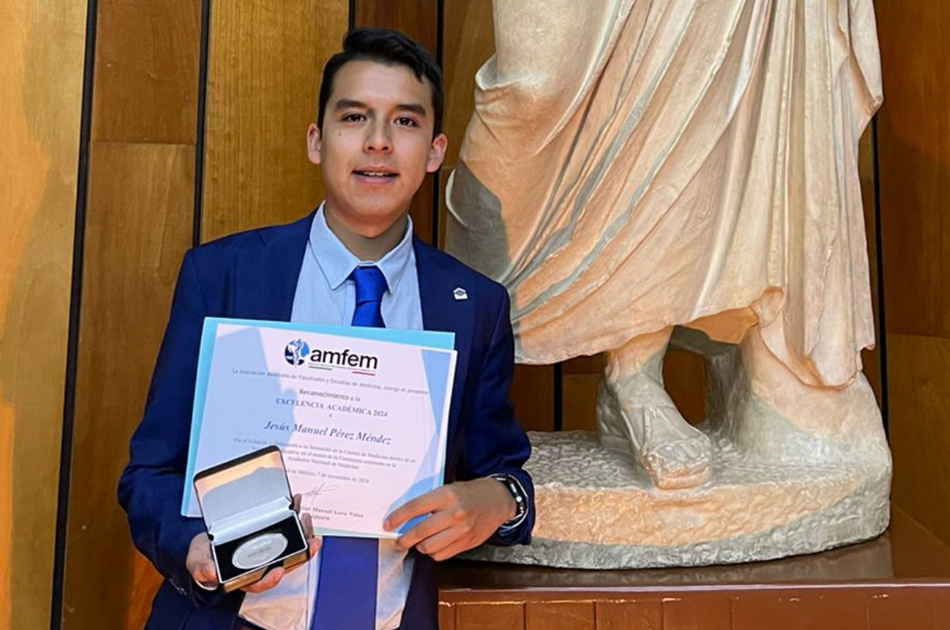 Sin ninguna materia recursada y con un promedio constante de 9.48, Jesús Manuel Pérez Méndez, pasante de la Licenciatura en Medicina General y Comunitaria, del Complejo Regional Nororiental de la BUAP, obtuvo el Premio a la Excelencia Académica 2024 por parte de la Asociación Mexicana de Facultades y Escuelas de Medicina (AMFEM).