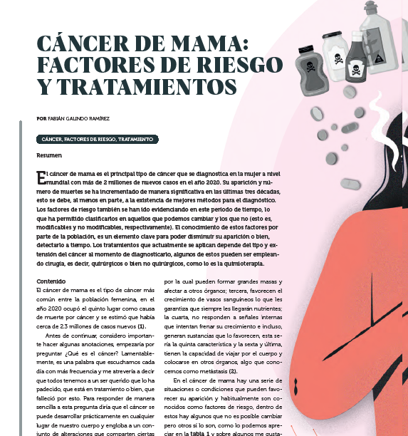El cáncer de mama es el principal tipo de cáncer que se diagnostica en la mujer a nivel mundial con más de 2 millones de nuevos casos en el año 2020.